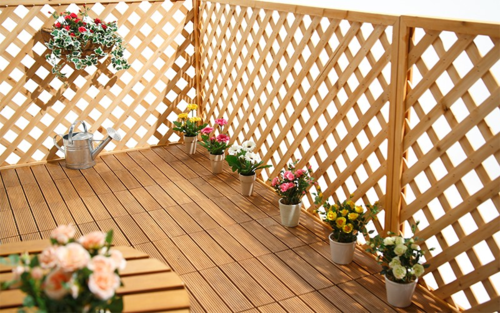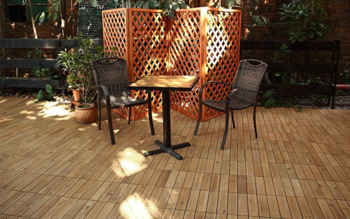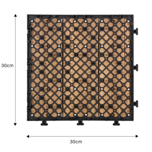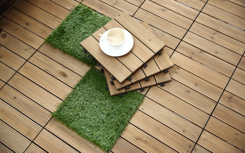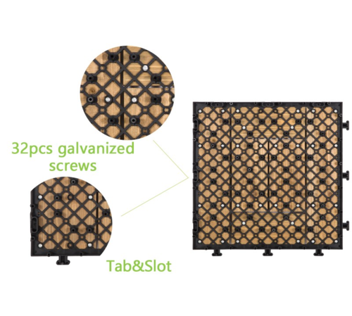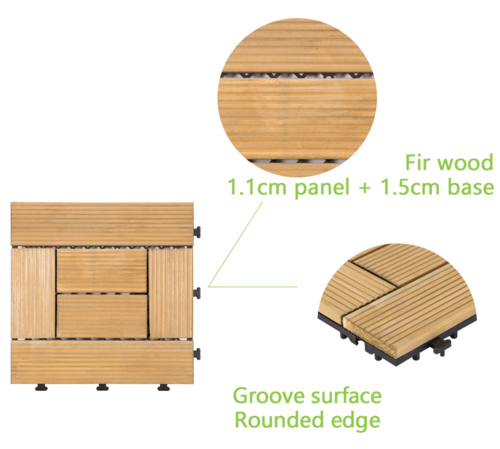 Solid wood decking tile is an economical item, combined the natural fir wood and new PE plastic base together by 32pcs galvanized screws.