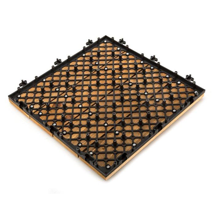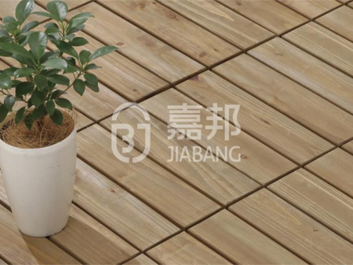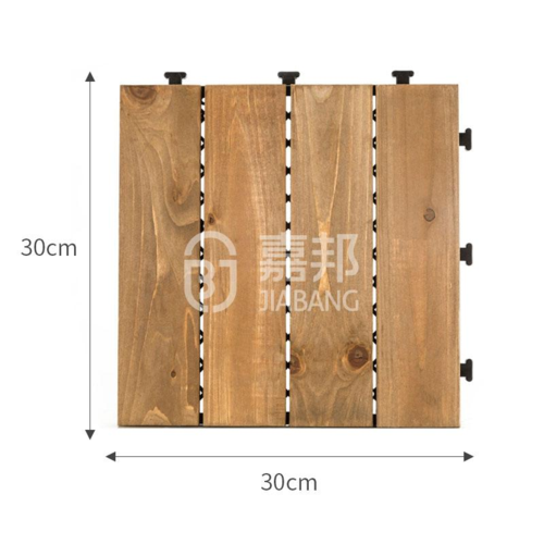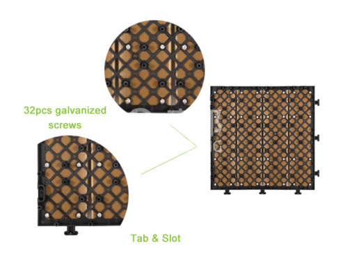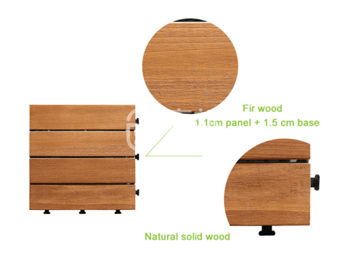 Solid wood decking tile is an economical item, combined the natural fir wood and new PE plastic base together by 32pcs galvanized screws.